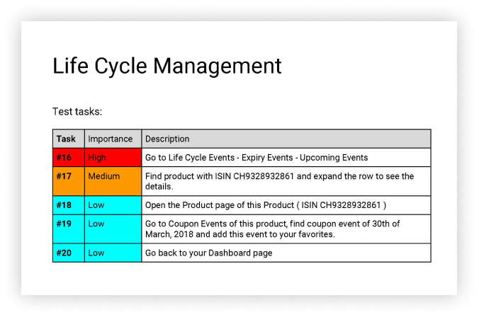 USER RESEARCH & REQUIREMENTS GATHERINGRegular interdisciplinary meetings with team members from each department (subject matter experts from client side, who represented the user base, one front-end developer, one back-end developer, one designer) to document the requirements in JIRA.